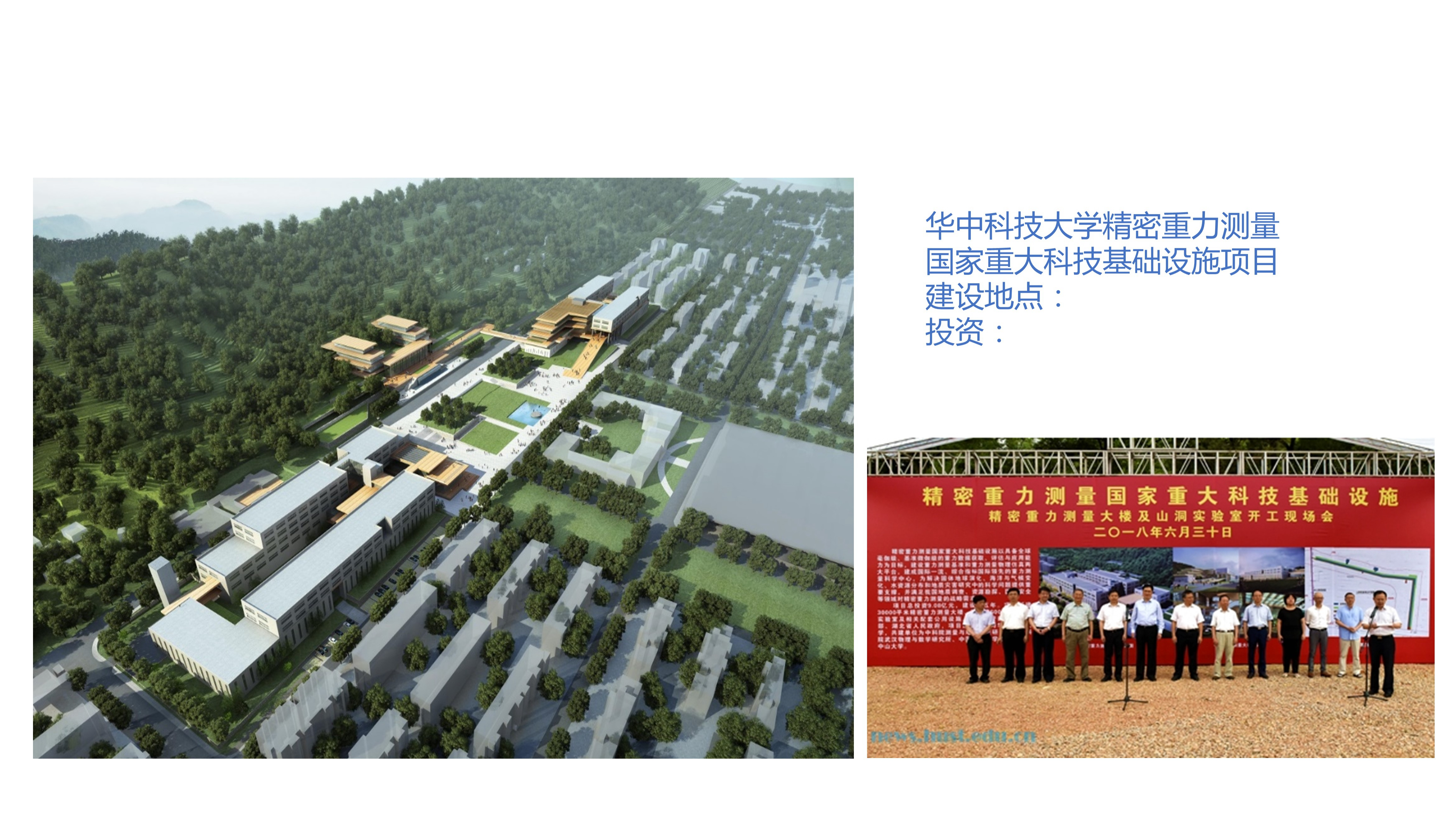 项目建设投资9.078亿元。主要建设重力测量基准平台、重力测量物理仿真平台及配套的土建、公用设施;新增设备仪器及软件155台(套)。项目依托华中科技大学条件优越的山洞实验室,新建精密重力测量楼30000㎡,改扩建山洞实验室6000㎡。