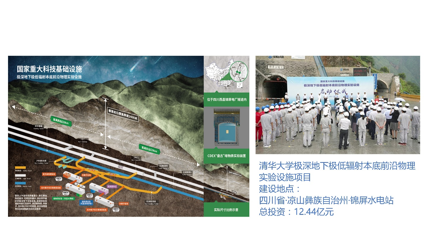 清华大学极深地下极低辐射本底前沿物理实验设施是“十三五”时期国家优先安排建设的重大科技基础设施。国家发展改革委牵头建设管理,教育部和四川省人民政府共同主管,法人单位是清华大学,共建单位为雅砻江流域水电开发有限公司。项目总投资12.44亿元,中国锦屏地下实验室一期2400米地下空间适应性建设建筑面积4.2万平方米,地上辅助实验室改造面积4000平方米。由于项目复杂,牵涉单位多,2017年的初承接项目咨询工作,2018年12月项目获国家发展改革委批复。获2020年度全国优秀工程咨询成果一等奖。